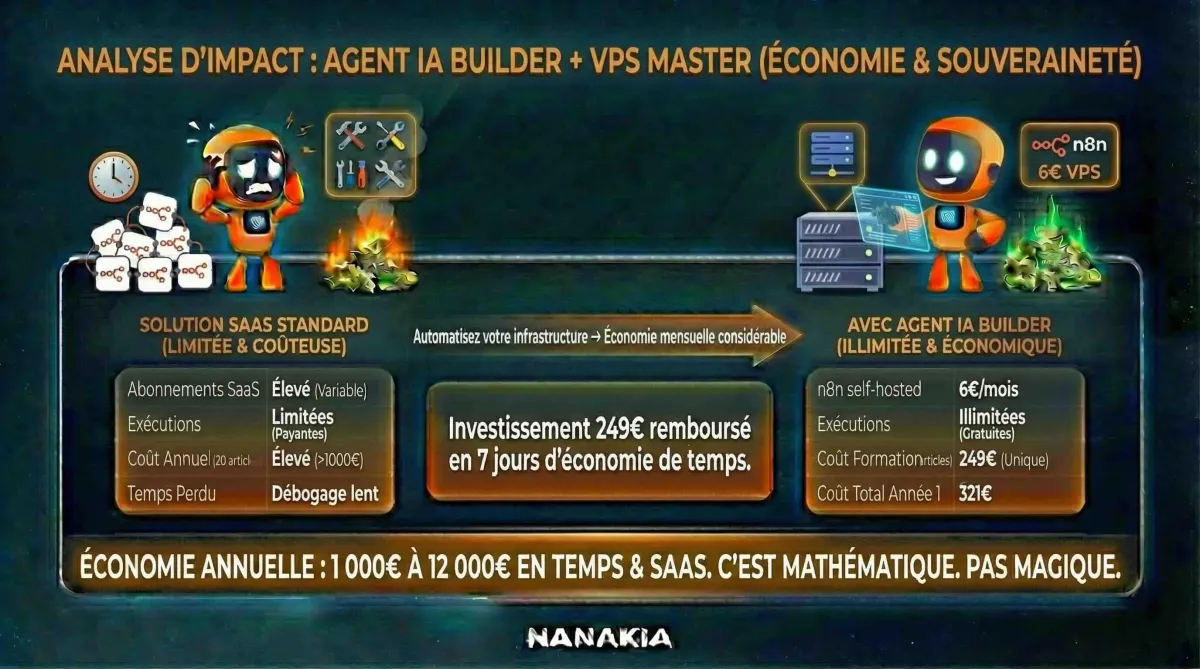 Pourquoi c'est clé : Sans ça, tu es prisonnier du modèle pay-per-execution. Avec ça, tu as la souveraineté totale — le coût d'un café par mois pour une infrastructure illimitée.
