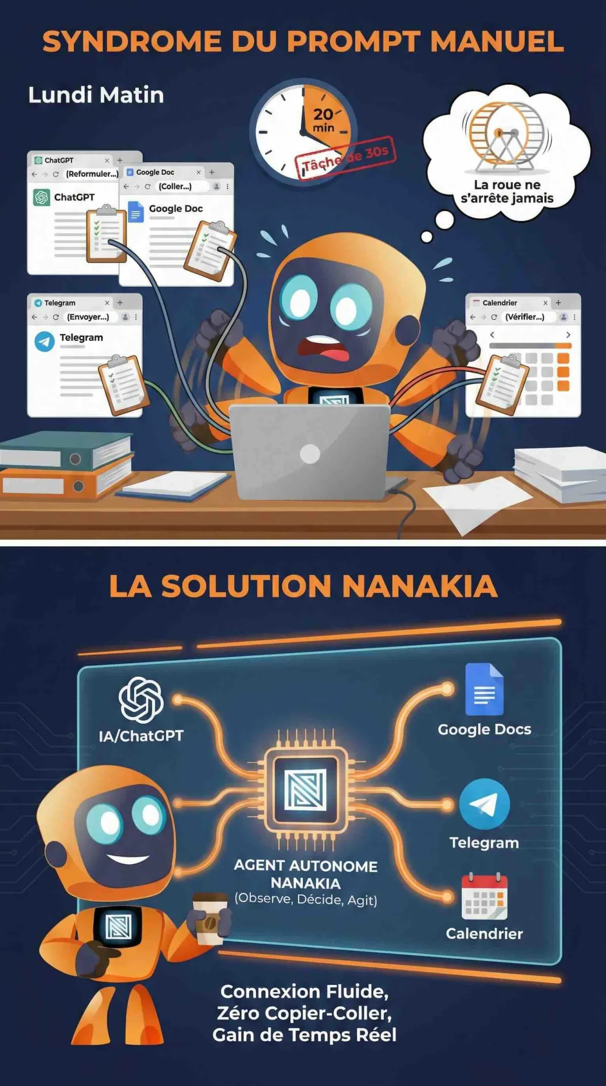 La question est : "Combien de temps tu vas encore faire manuellement ce qu'un agent fait en autonome ?"