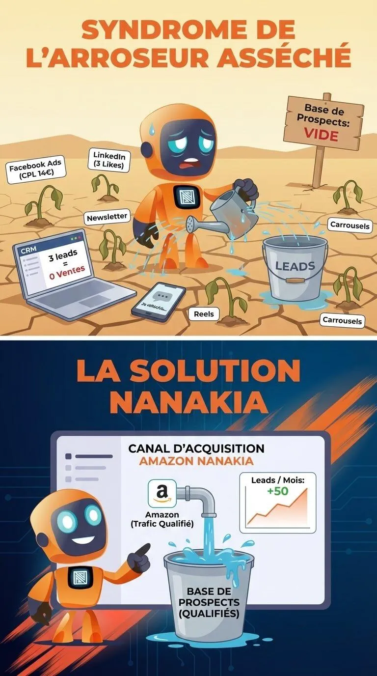 tu arroses partout, tu dépenses partout, tu publies partout… et ta base de prospects reste aussi vide qu'un parking de centre commercial un dimanche soir.