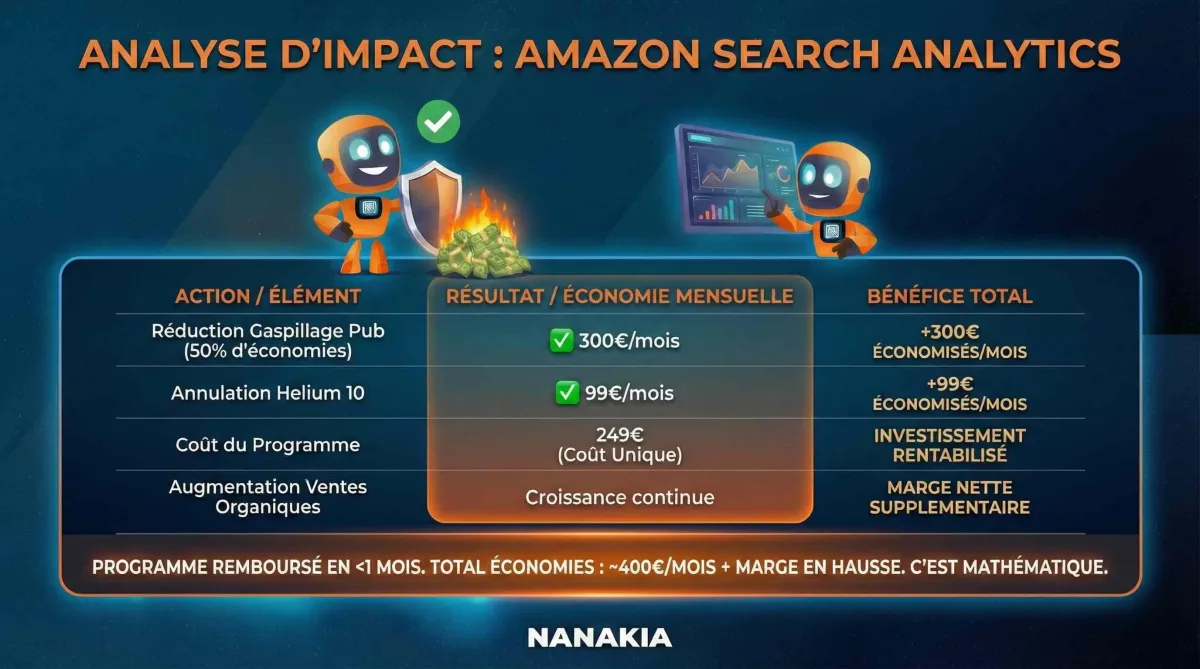 Essaie Amazon Search Analytics AVANT de prendre ta décision finale.