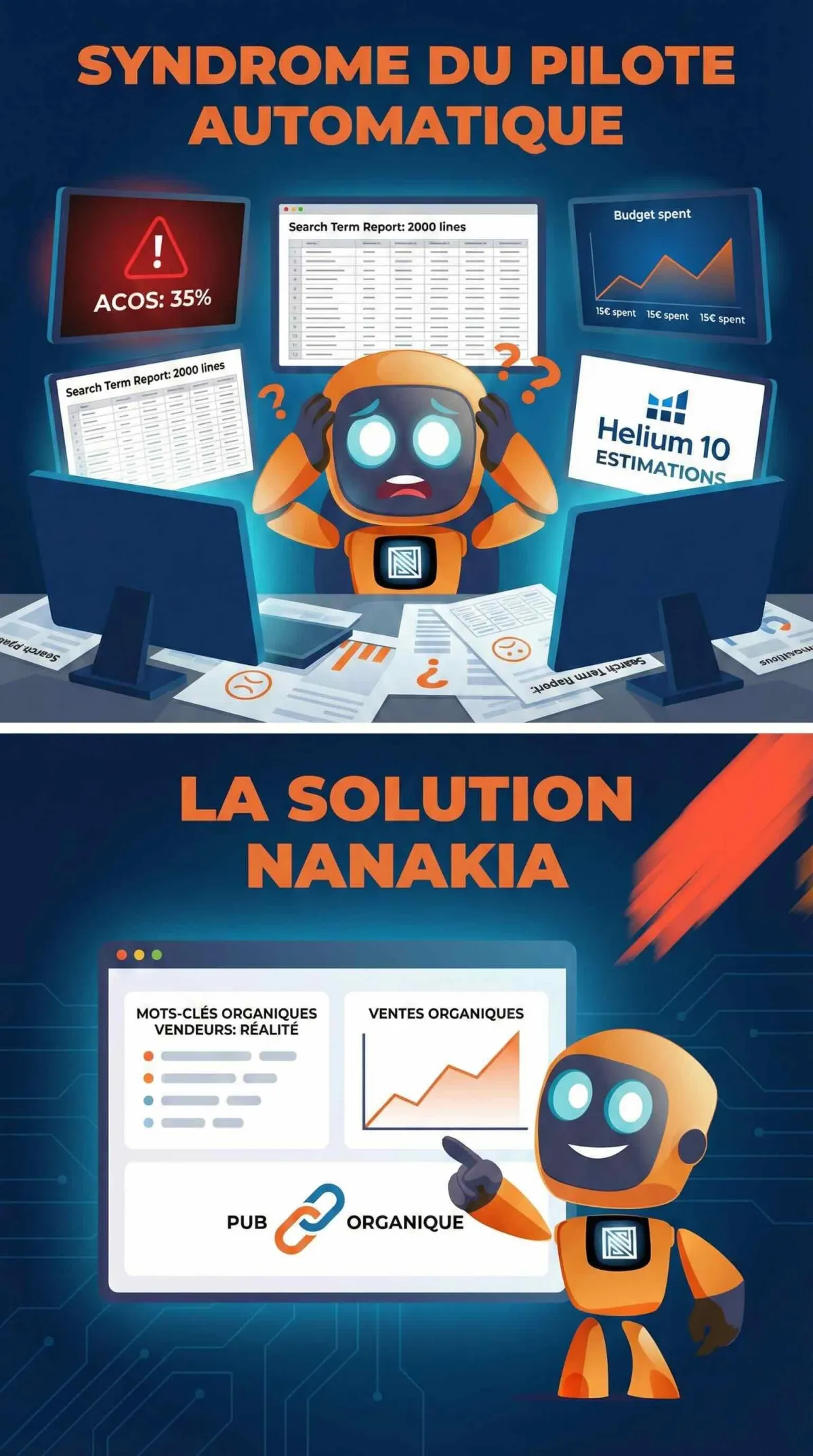 Tu dépenses chaque mois en pub Amazon… sans savoir quels mots-clés te rapportent vraiment. Et tu appelles ça "une stratégie" ...