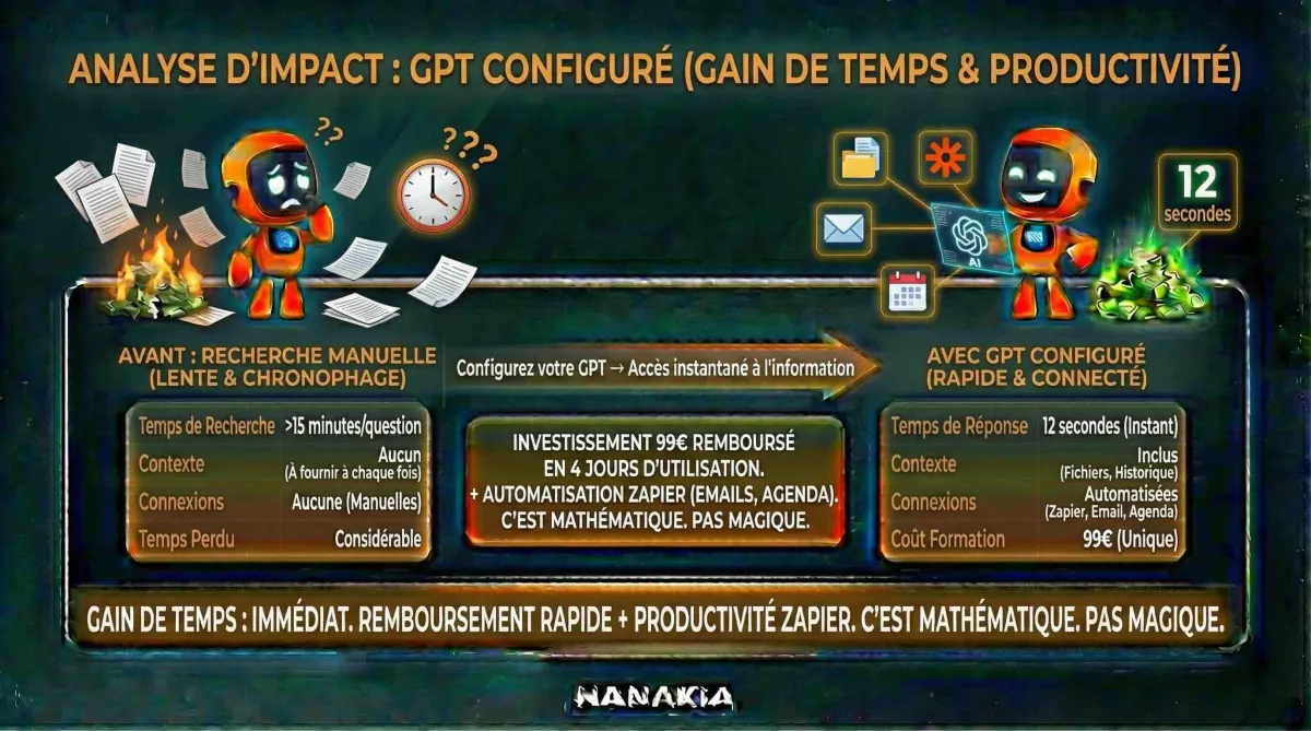 Les GPTs personnalisés existent depuis plus d'un an. Tes concurrents les utilisent déjà pour automatiser ce que toi tu fais encore à la main.