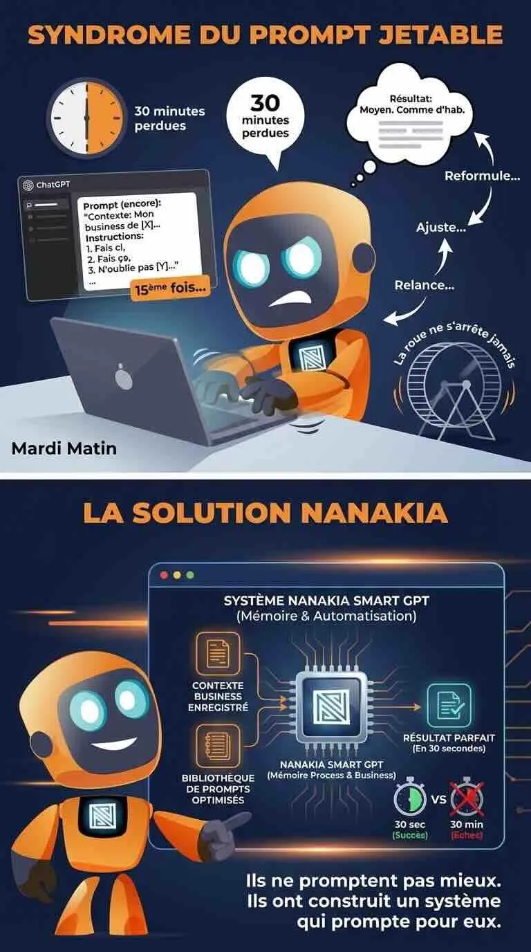 Tu tapes ton prompt. Le même que la semaine dernière. Tu reformules, tu précises le contexte, tu re-colles tes instructions… pour la quinzième fois.
