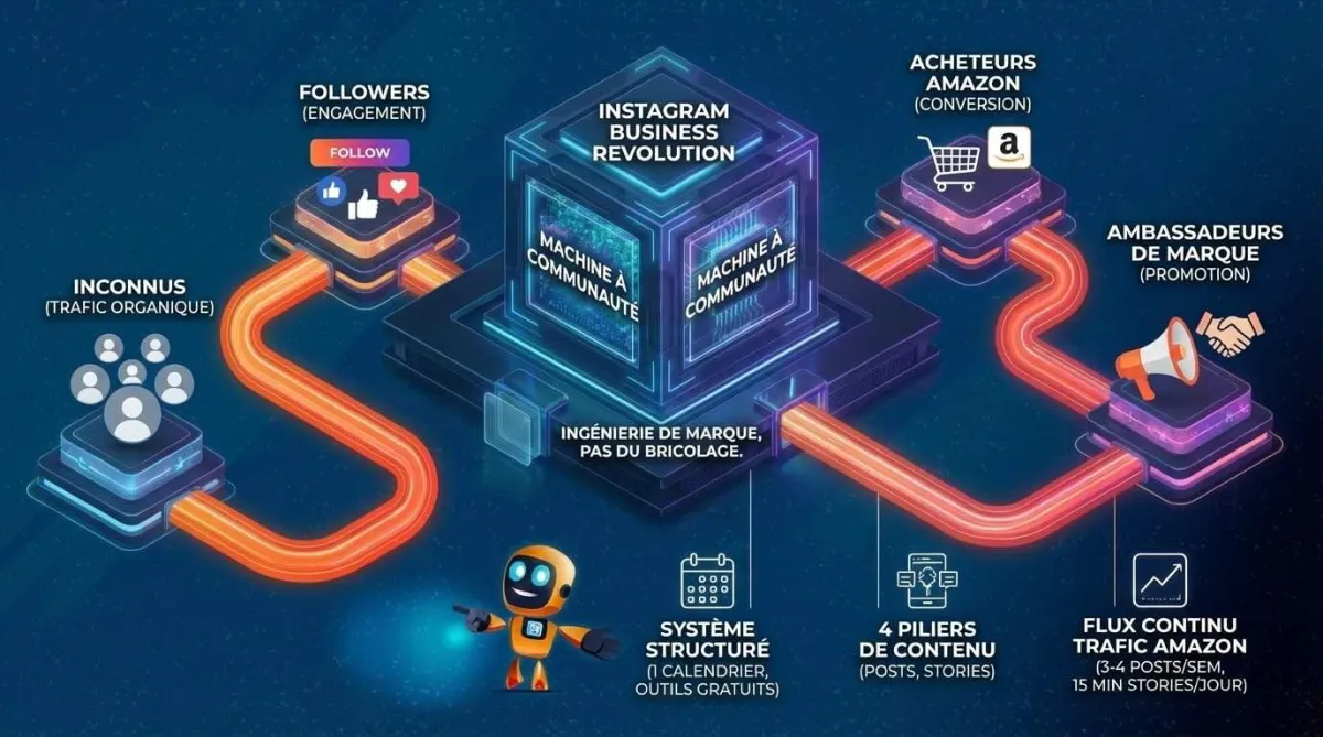 Tu dois construire une Machine à Communauté qui transforme des inconnus en followers, des followers en acheteurs Amazon, et des acheteurs en ambassadeurs de ta marque.