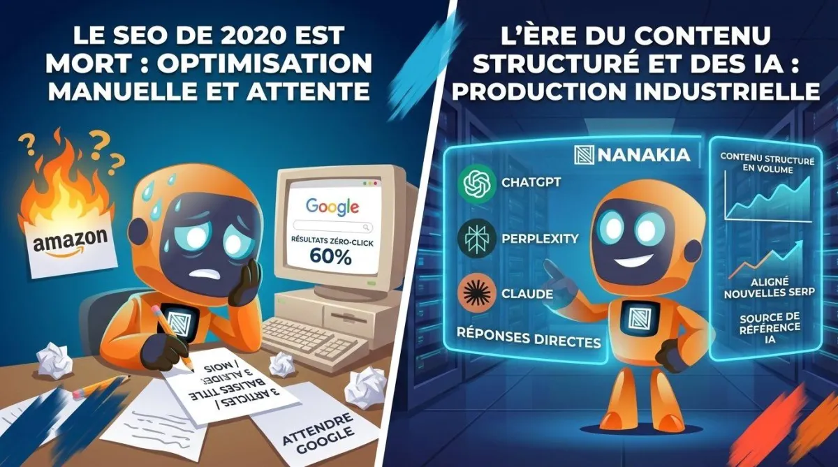 Le SEO tel que tu le pratiques est mort. Publier 3 articles par mois, optimiser tes balises title et attendre que Google te récompense — c'était la stratégie de 2020.