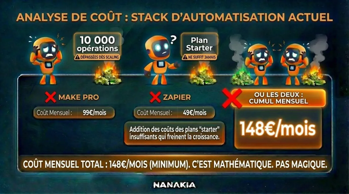 combien de temps tu vas encore payer 100€/mois pour des automatisations que tu ne contrôles pas ?