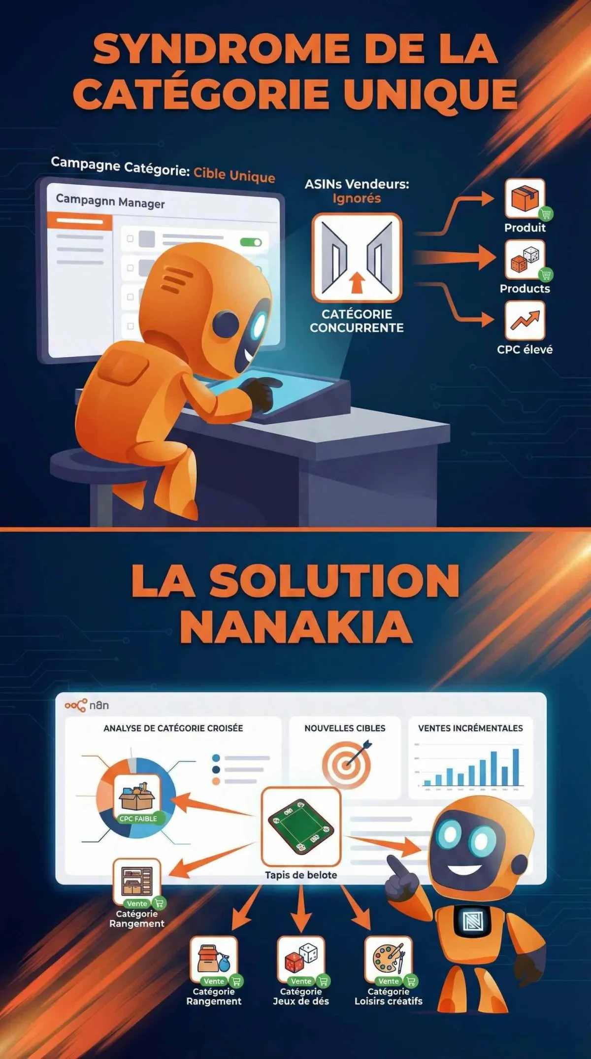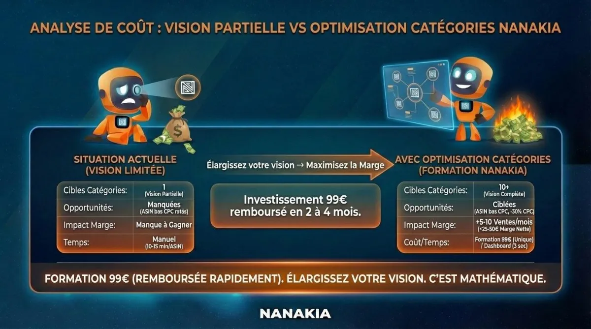 S'il ne cible qu'une seule catégorie au lieu de 10, il rate des dizaines d'ASIN à bas CPC — des carrefours d'audience où la concurrence est quasi inexistante.