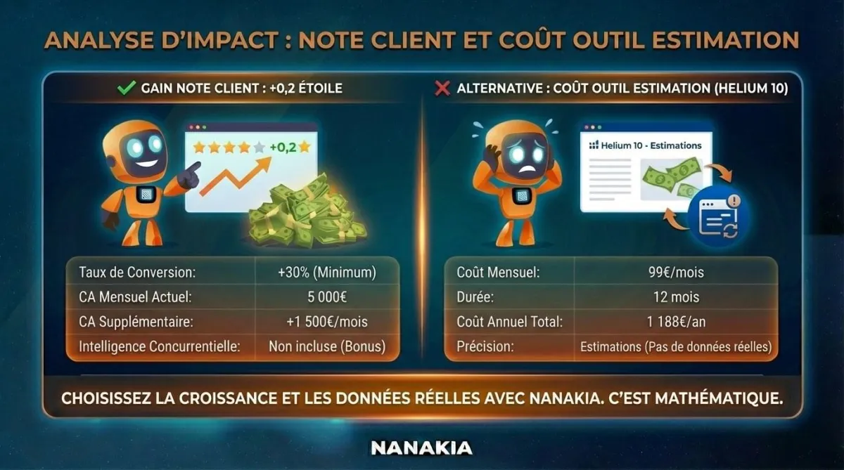 Sans payer 99€/mois d'outils d'estimation. Sans lire 2 000 avis à la main. Même si tu n'as jamais analysé un seul commentaire client de ta vie.