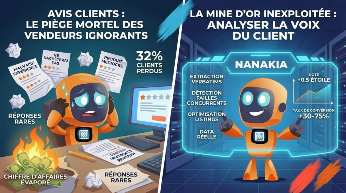 Pendant ce temps, les vendeurs qui cartonnent ? Ils ne devinent pas ce que veut leur marché. Ils l'analysent. Ils extraient les verbatims. Ils détectent les failles de leurs concurrents. Ils optimisent leurs listings avec de la data réelle — pas des estimations.