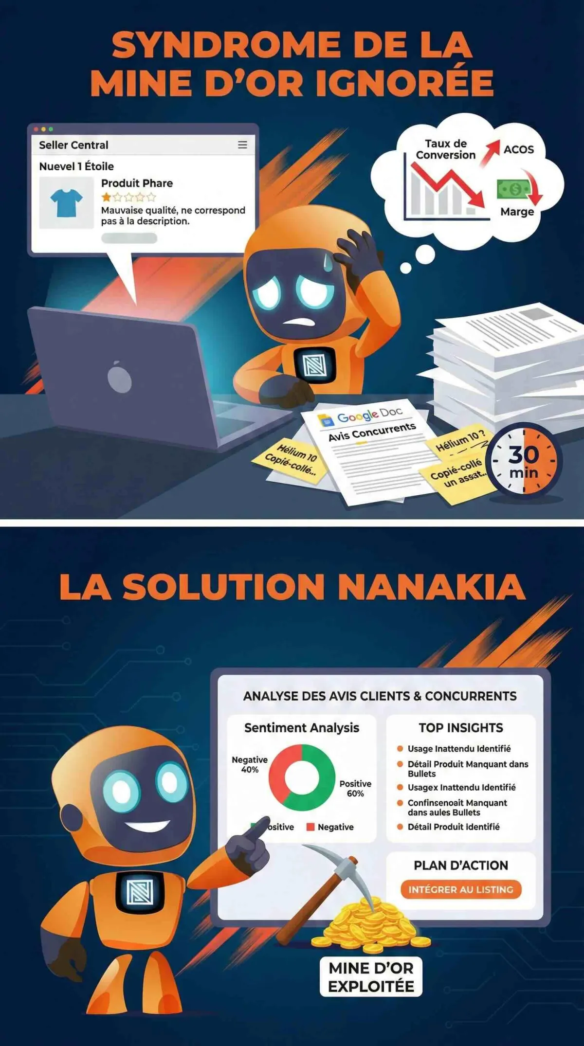 Les avis de tes clients et de tes concurrents sont la source d'intelligence commerciale la plus riche sur Amazon. 97% des besoins clients y sont déjà exprimés. Mais tu passes à côté. Chaque jour.