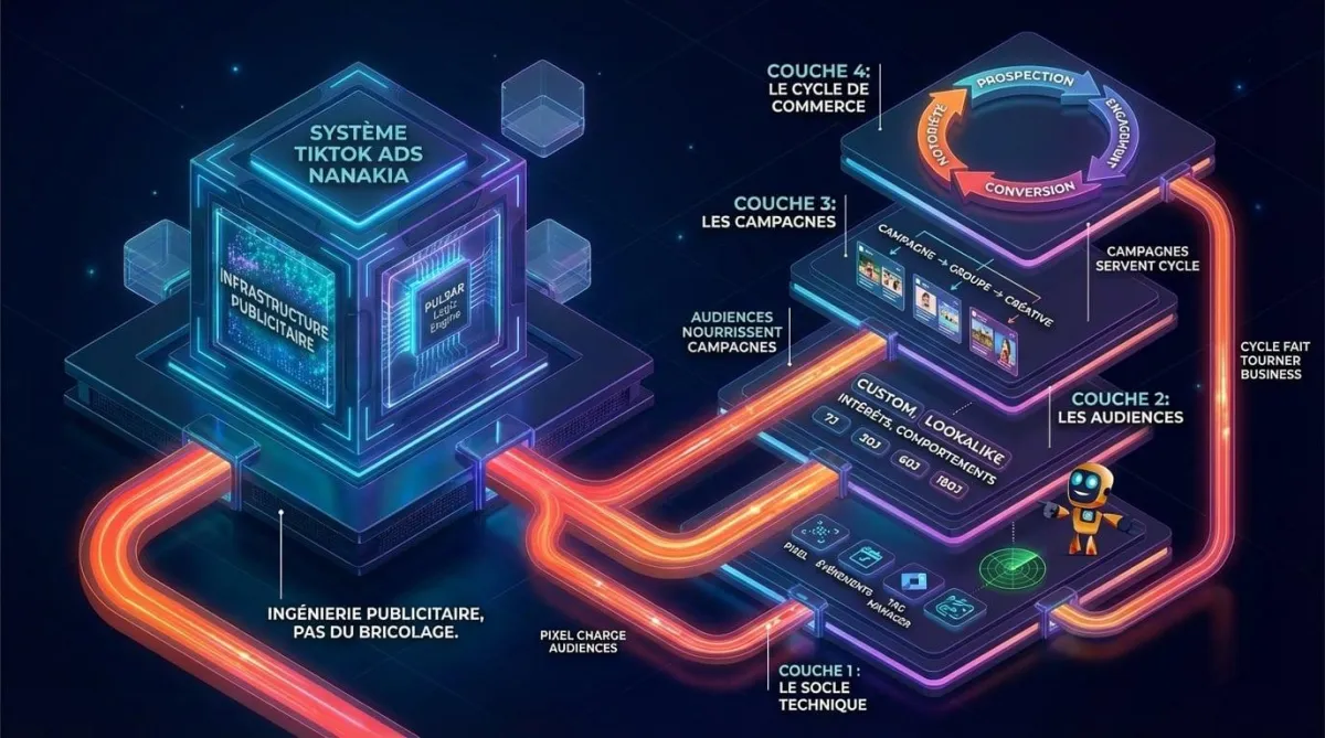 au lieu de lancer des pubs isolées, tu construis une architecture en couches.