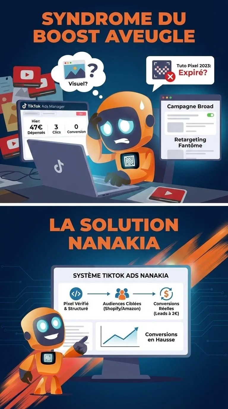 Tu as un site ou un shop, tu sais qu'il faut faire de la pub, mais l'interface TikTok Ads te paraît aussi claire qu'un cockpit d'avion. Tu hésites entre boost organique, Spark Ads, In-Feed Ads… et tu ne sais pas par où commencer.