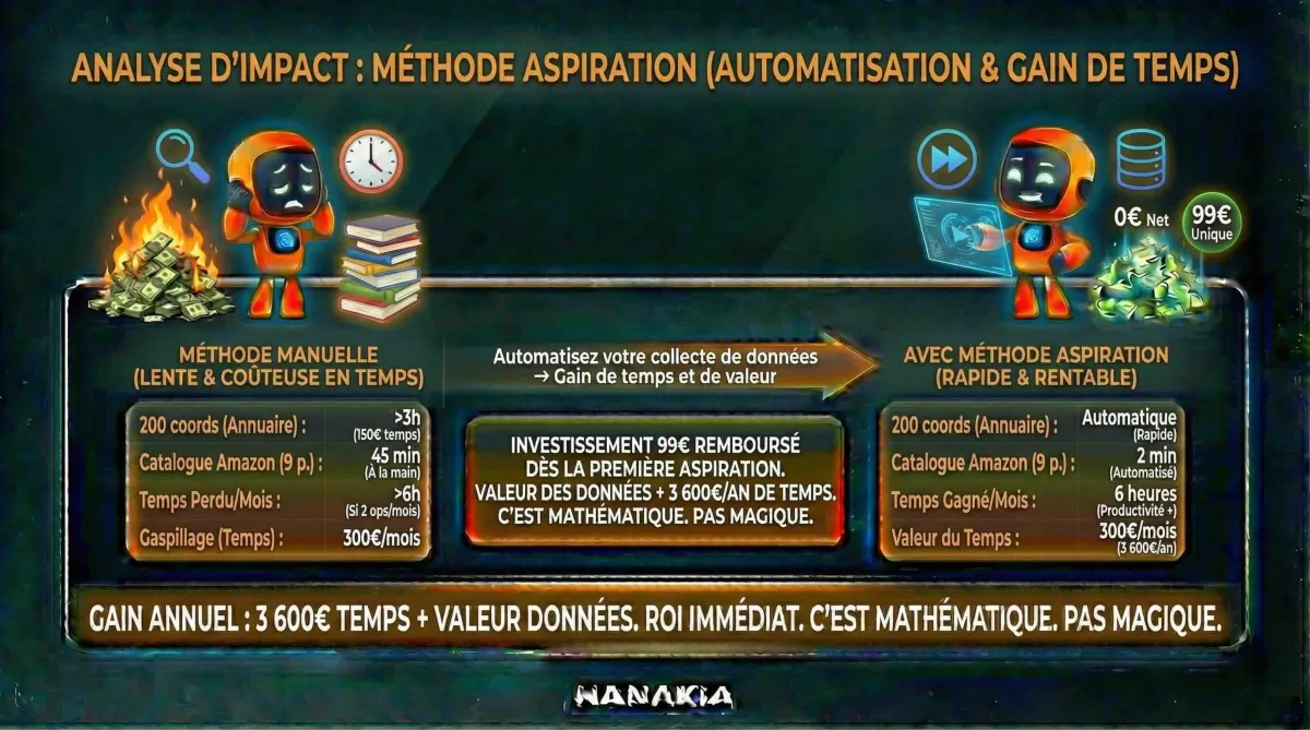 Et on ne parle même pas de la valeur des données elles-mêmes : les prospects que tu contactes, les concurrents que tu surveilles, les décisions que tu prends plus vite.